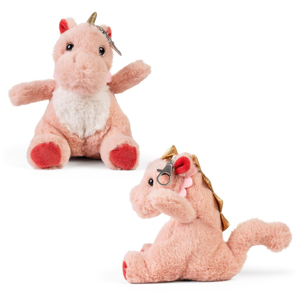 Discover our Little Living Nature Dragon keyring clips. Perfect for adding a touch of fun to a bag or set of keys, these charming plush keyring clips will make an irresistible addition to your store. Our enchanting Dragons are cheerful companions ready for any adventure, day or night. Soft and sweet, our bag charms are designed to bring a smile. With a shiny silver clasp, they easily attach to any bag and are sure to brighten up your day. These trendy clips add a delightful touch of luxury that both kids and adults will love! Available in three magical colourways - pink, blue and green.