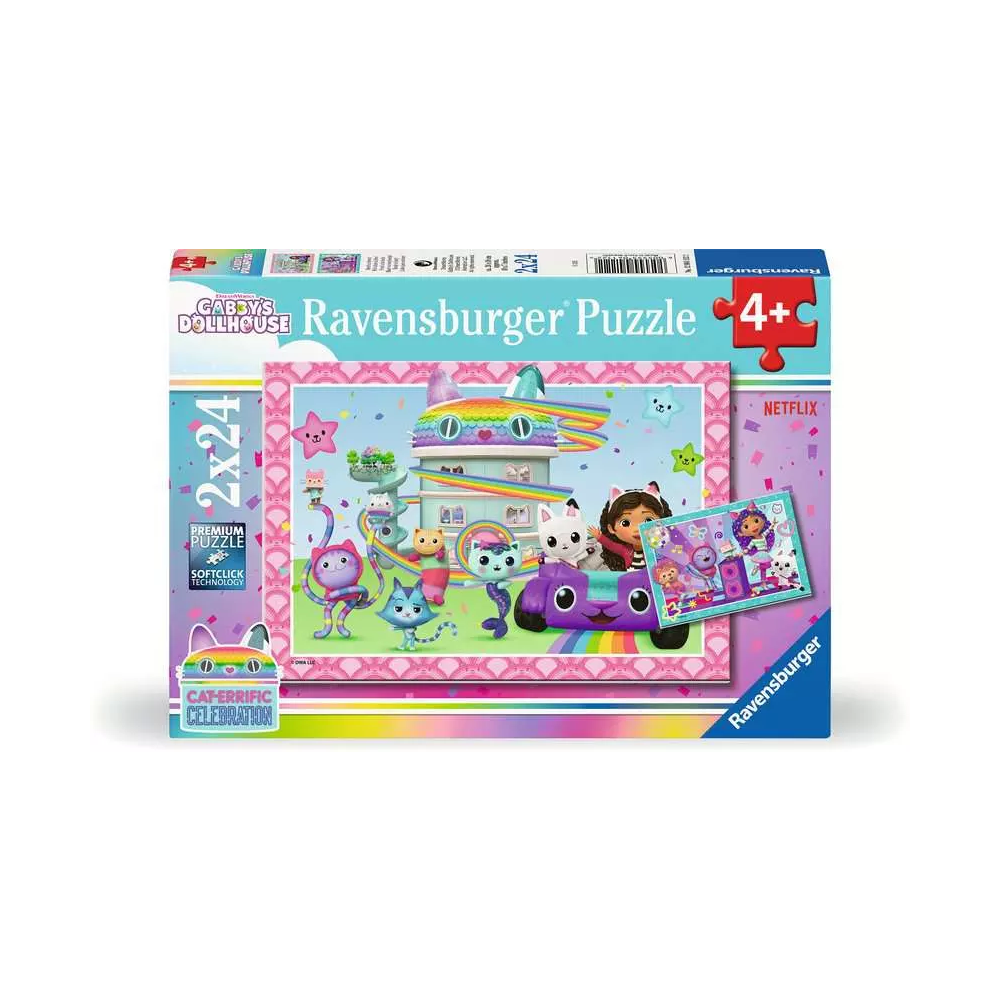 Gabby's Dollhouse 2x24p. Discover the perfect fit! Ravensburger has the perfect puzzle for every child. With interesting motifs and strategic piece sizes, as well as a variety of formats, success is guaranteed for all age groups and levels of difficulty. Enjoy Ravensburger quality with this family-friendly activity! From 4 years.