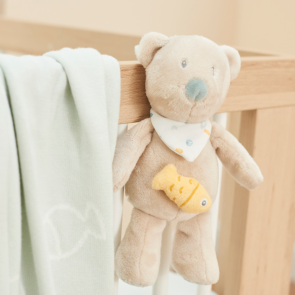 Adorable musical plush, playing a soft and tender melody La-Le-Lu to fall asleep peacefully.