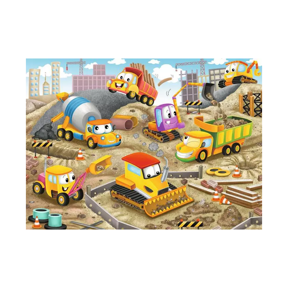 Join favorite construction buddies like the bulldozer, excavator, cement truck, and more as they “Raise the Roof!” and build a batch of puzzle fun!