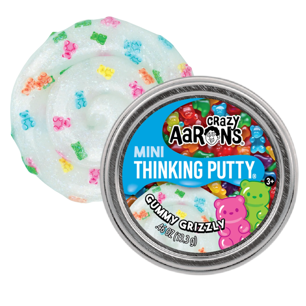 Get ready to have a bear-y fun time with Mini Gummy Grizzly Thinking Putty®. This shimmery opal putty is packed with colorful bear-shaped clay pieces, reminiscent of everyone's favorite gummy treat!
