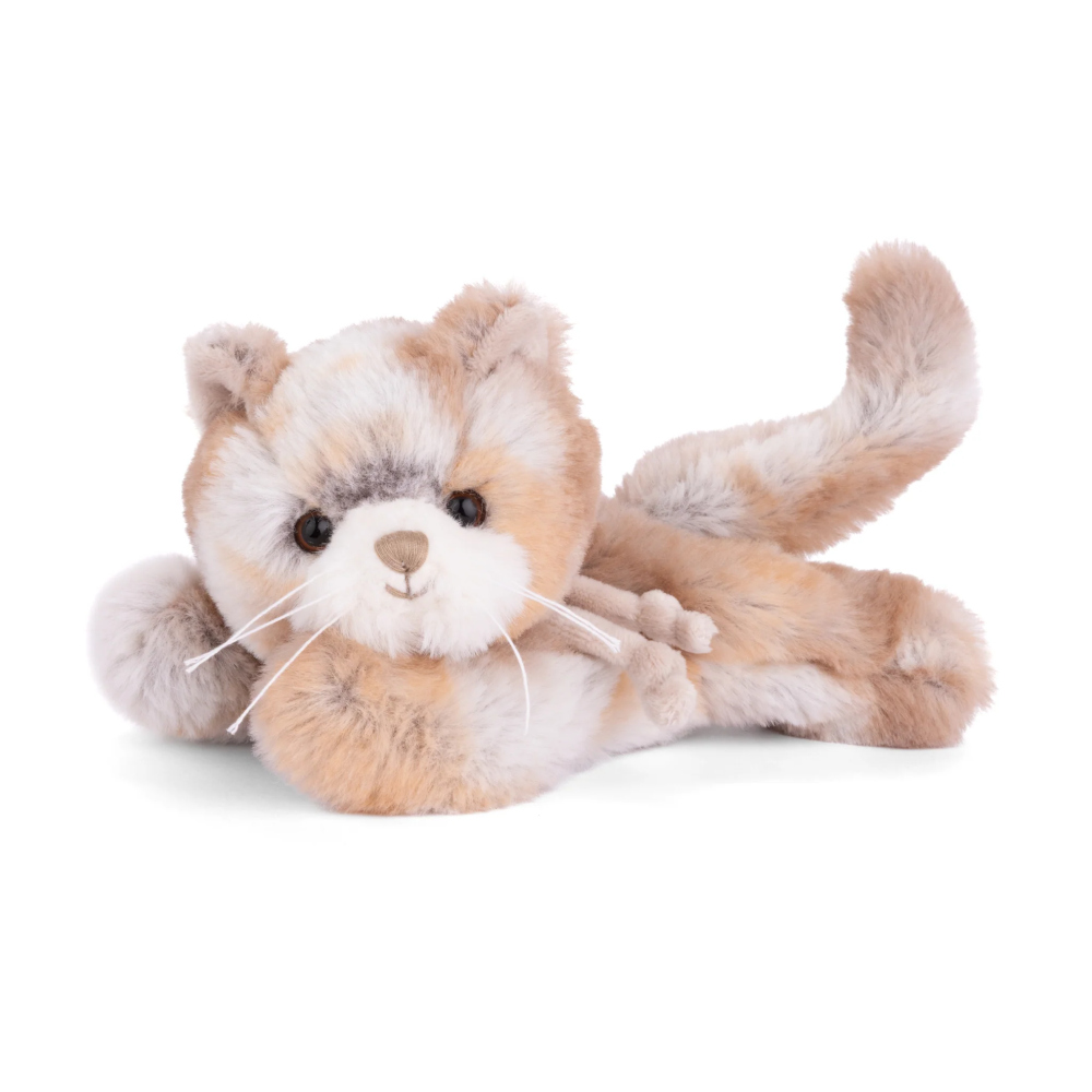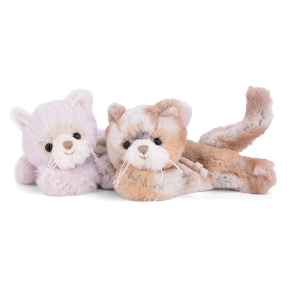 These incredibly soft cats love to lay around and lounge. Scratch their belly and you might hear a purr. Made in white or grey with a cute stripe collar, these kitties come to life with every hug.