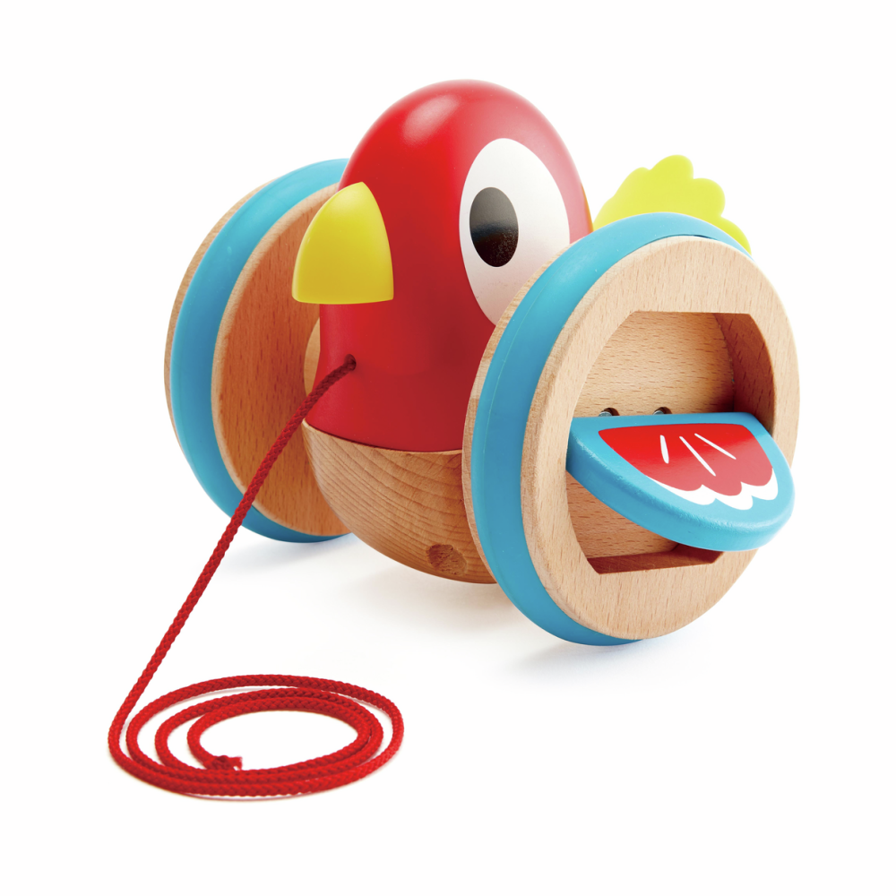 Pull the bird by its cord and watch as it wobbles and flaps its wings. The wings make a clapping noise.