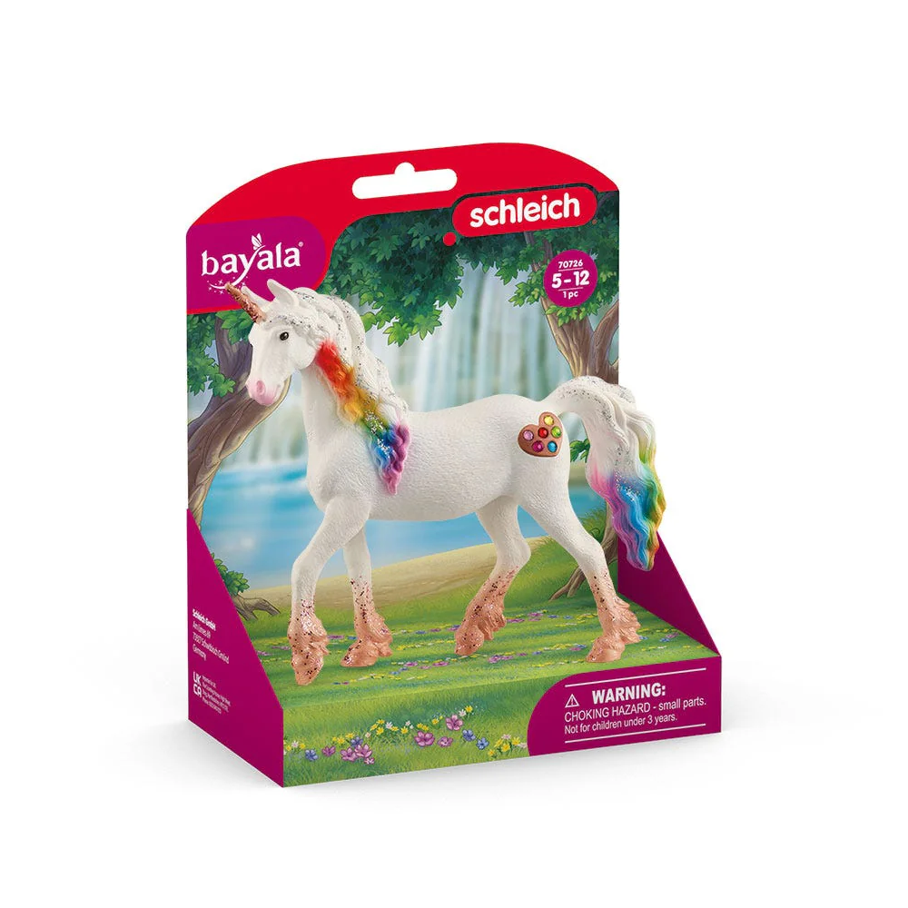 Colorful enchantment bursts into light with the Rainbow Love Unicorn Mare! A pearly white coat and a glittery rainbow mane and tail give this fantasyland creature a magical radiance. A shiny copper-colored horn shimmers and sparkles with delight. Gallop off to BAYALA® aboard the Rainbow Love Unicorn Mare figurine from schleich®.The enchanted figurines and playsets of schleich® BAYALA® introduce the limitless possibilities of storytelling and imaginative play. From majestic owls and woodland elves to glittering flower houses and unicorn stables, schleich® BAYALA® lets your stories run wild. Mythical creature figurines twinkle in rich detail, while authentic playsets enrich every tale! Our fairy toy figurines love to be whisked away into stories featuring schleich® dinosaur toys, wild animal figures and toy horses! schleich® mythical creature toys and playsets are built to last for generations. All our toys meet the highest national, international, and enchanted kingdom safety standards.