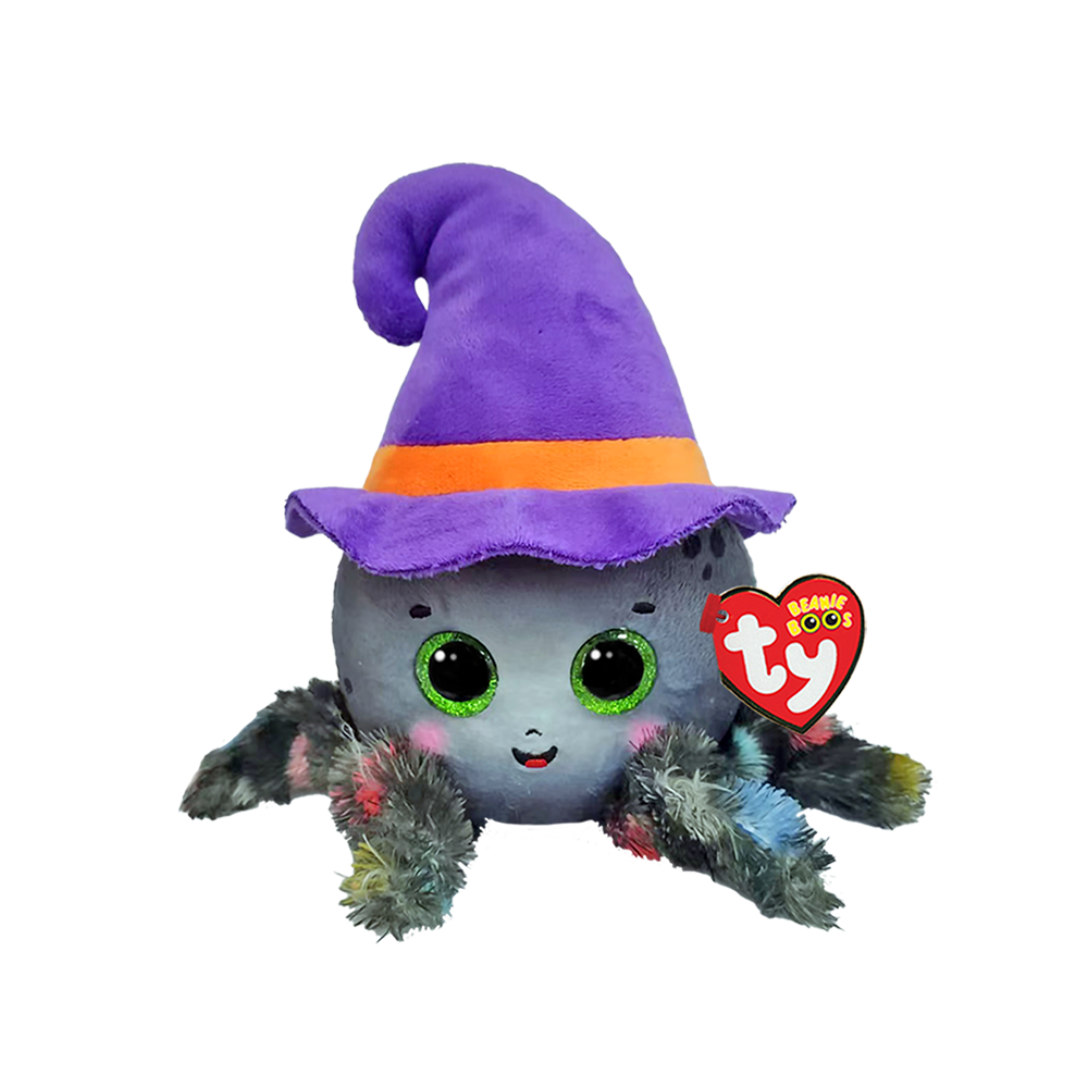 Weaver weaves Halloween magic with every fuzzy leg. Dressed to impress in a witchy hat and ready for mischief, this spider spins fun instead of webs. A must-have for anyone who loves cute and creepy.